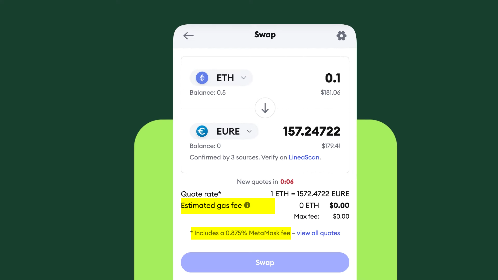 При оплате ваша криптовалюта конвертируется в местную валюту. За каждую транзакцию взимается небольшая комиссия: обычно около 2 центов за газ в сети Linea при использовании стейблкоинов и комиссия за своп в размере 0,875% для нестабильных монет, таких как WETH.